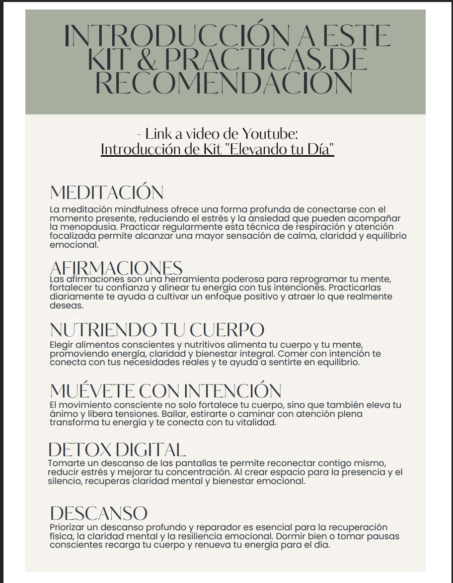 Elevando tu Día es un kit digital creado para que empieces cada mañana con intención, claridad y vitalidad.